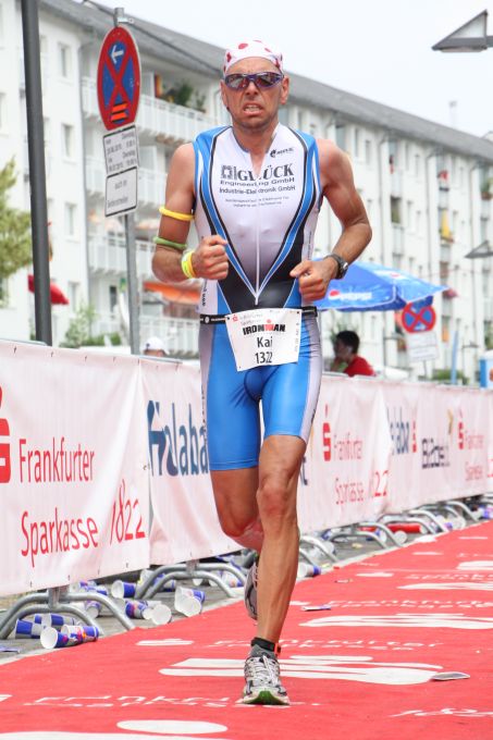 Der Einlauf auf dem Römerberg war dann Emotion pur. Noch ein Kuss für Birgit, die kurz vor der Ziellinie auf der Tribüne gewartet hat. Ich war selten so glücklich über das Finish wie heute und das trotz der für mich wenig attraktiven Zeit von 10:15 Stunden nach einem 3:52 Marathon.