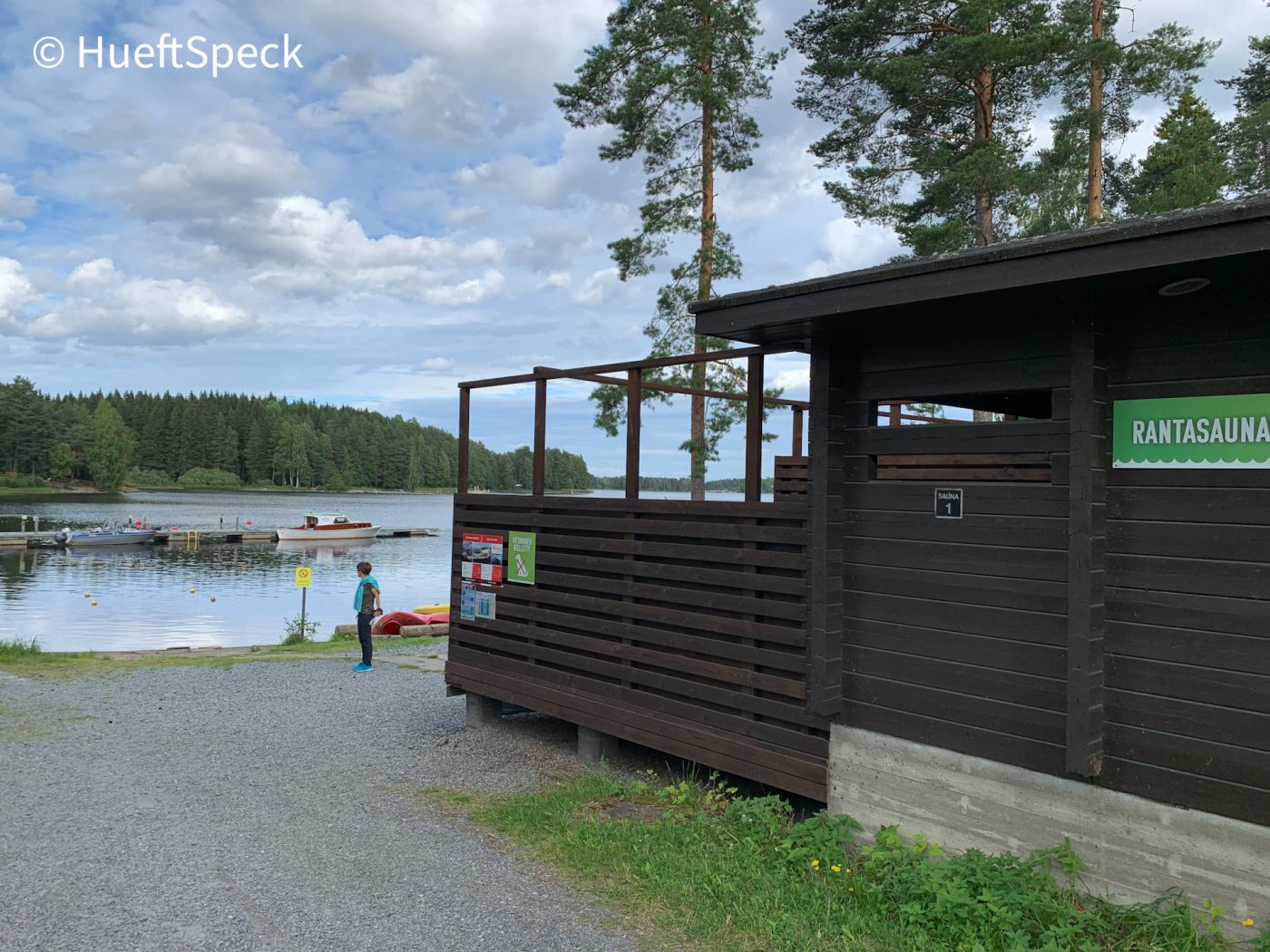 Auf dem Camping gab es natürlich auch eine Sauna. Allerdings war nur die Aamu-Sauna in der Platzgebühr inbegriffen, zu den anderen Zeiten konnte man sie aber mieten. So haben wir spontan beschlossen, uns nach dem Abendessen eine private Ilta-Sauna zu gönnen. So genial, wenn man nach der Sauna direkt in den See springen kann.