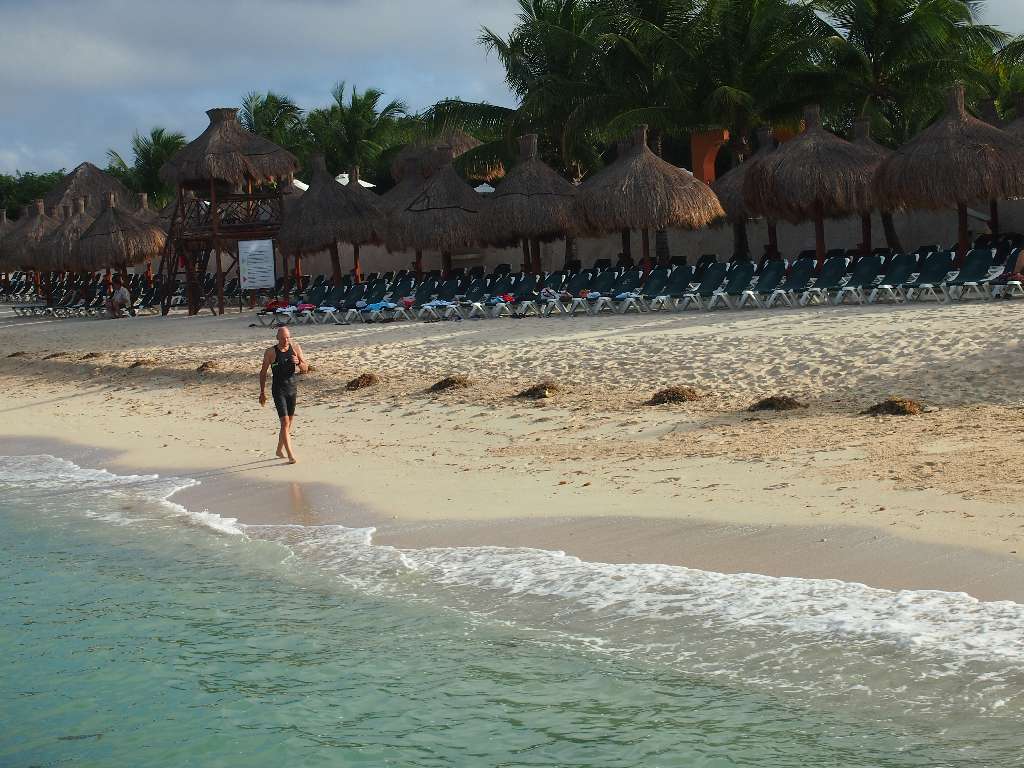 Morgen früh besuchen wir den Schwimmstart in Chankanaab, der zwischen unserem Hotel (8km südlich des Schwimmstarts) und der Wechselzone 2 in San Miguel liegt (damit ist in diesem Fall nicht das gleichnamige Bier sondern die Inselhauptstadt gemeint).