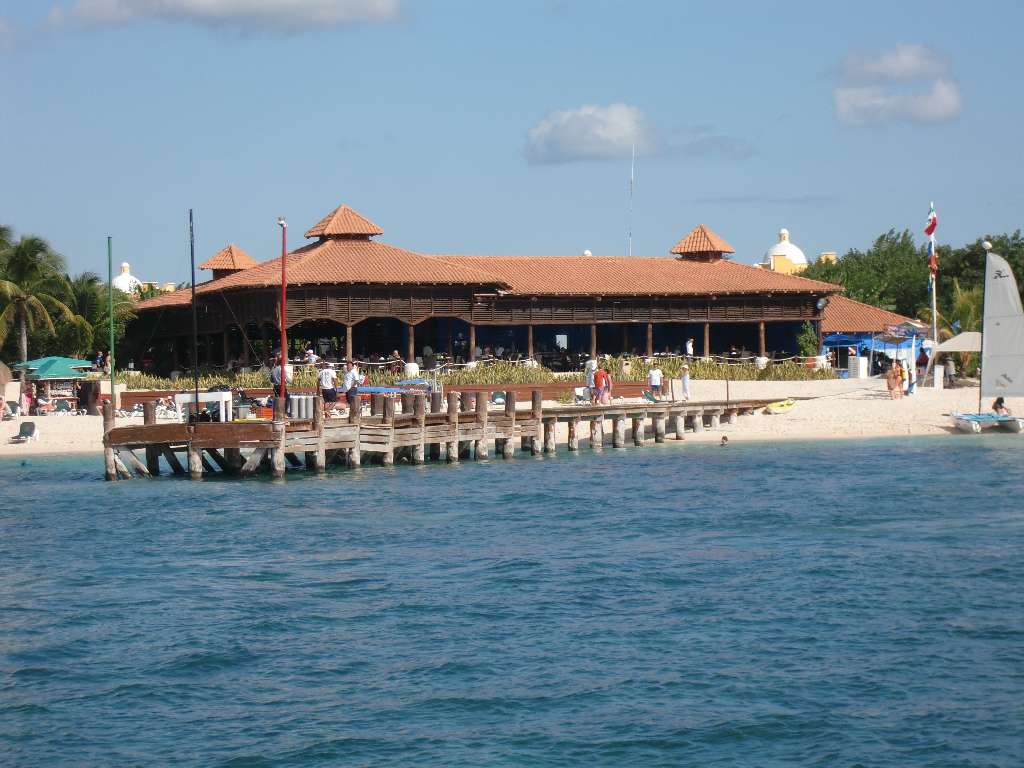 Chankanaab ist ein Vergnügungspark mit Delfinshow. Am Strand gibt es ein rechteckiges Bassin von vielleicht 150m Länge und 100m Breite, das von einem Pier bzw. Steg umgeben ist.