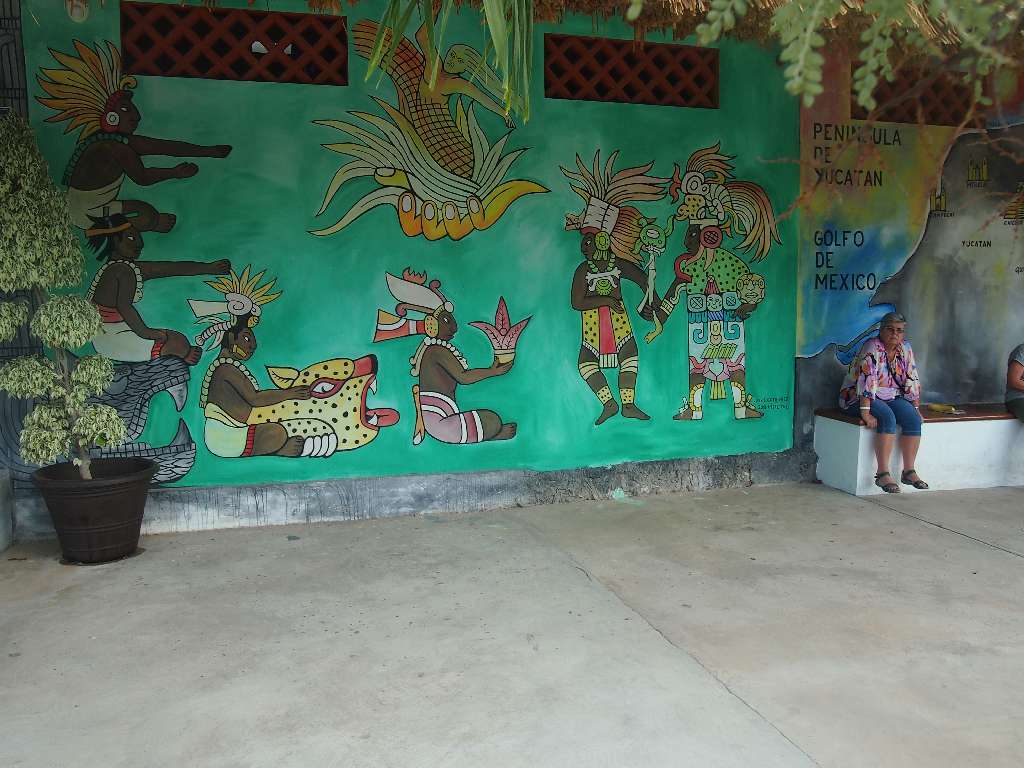 Morgens um 06:20 standen die Taxis an der Rezeption bereit. 17 weitere Mann aus der Hannes-Gruppe wollten gemeinsam mit uns beiden alte Maya-Stätten unsicher machen. Also ging es zuerst mit dem Taxi zum Hafen, dann mit der Fähre nach Playa del Carmen und von dort mit dem Reisebus auf Tour. Eine deutschsprachige Reiseleiterin hatten wir auch noch dabei, die uns fast ohne Punkt und Komma von der Geschichte Mexikos und der Maya erzählt hat.