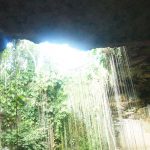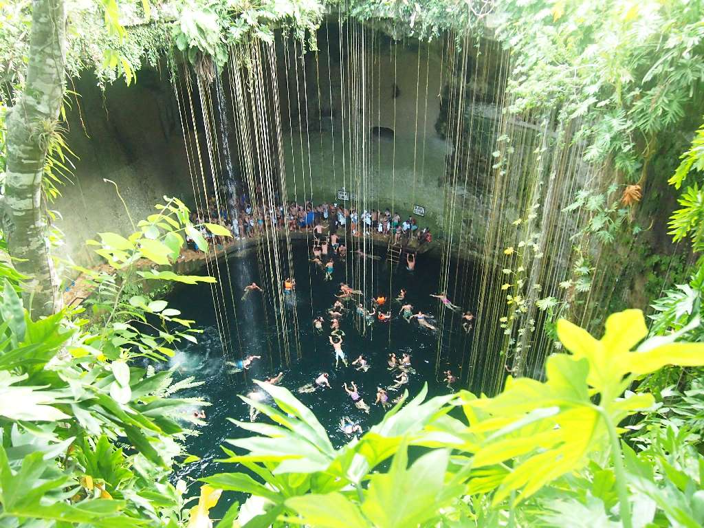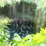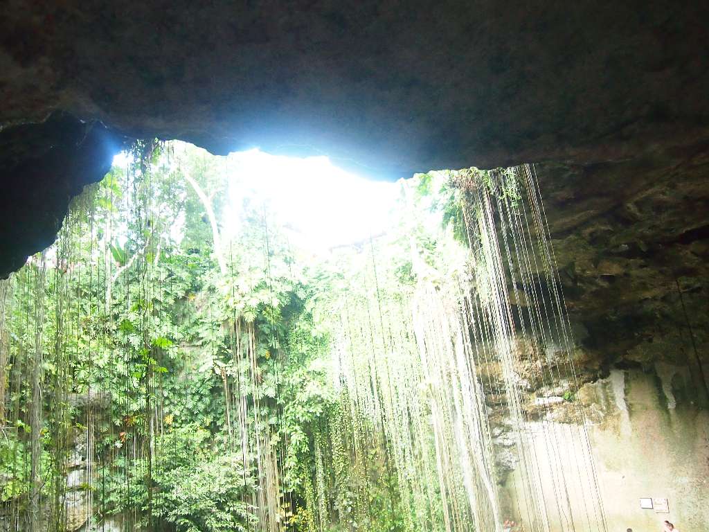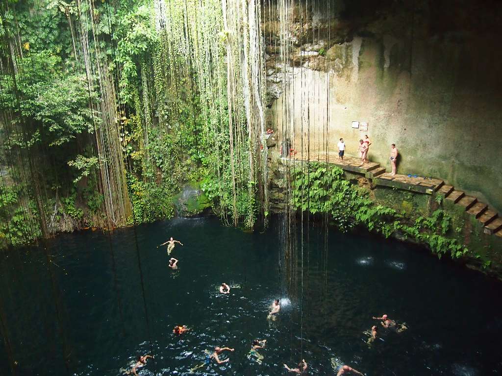 Nach 2 1/2 Stunden sind wir zum Mittagessen in eine Turi-Abfütter-Station und danach weiter nach Ik Kil, einem Cenote (unterirrdischer Brunnen), der traumhaft angelegt ist, und in dem man sogar schwimmen kann.